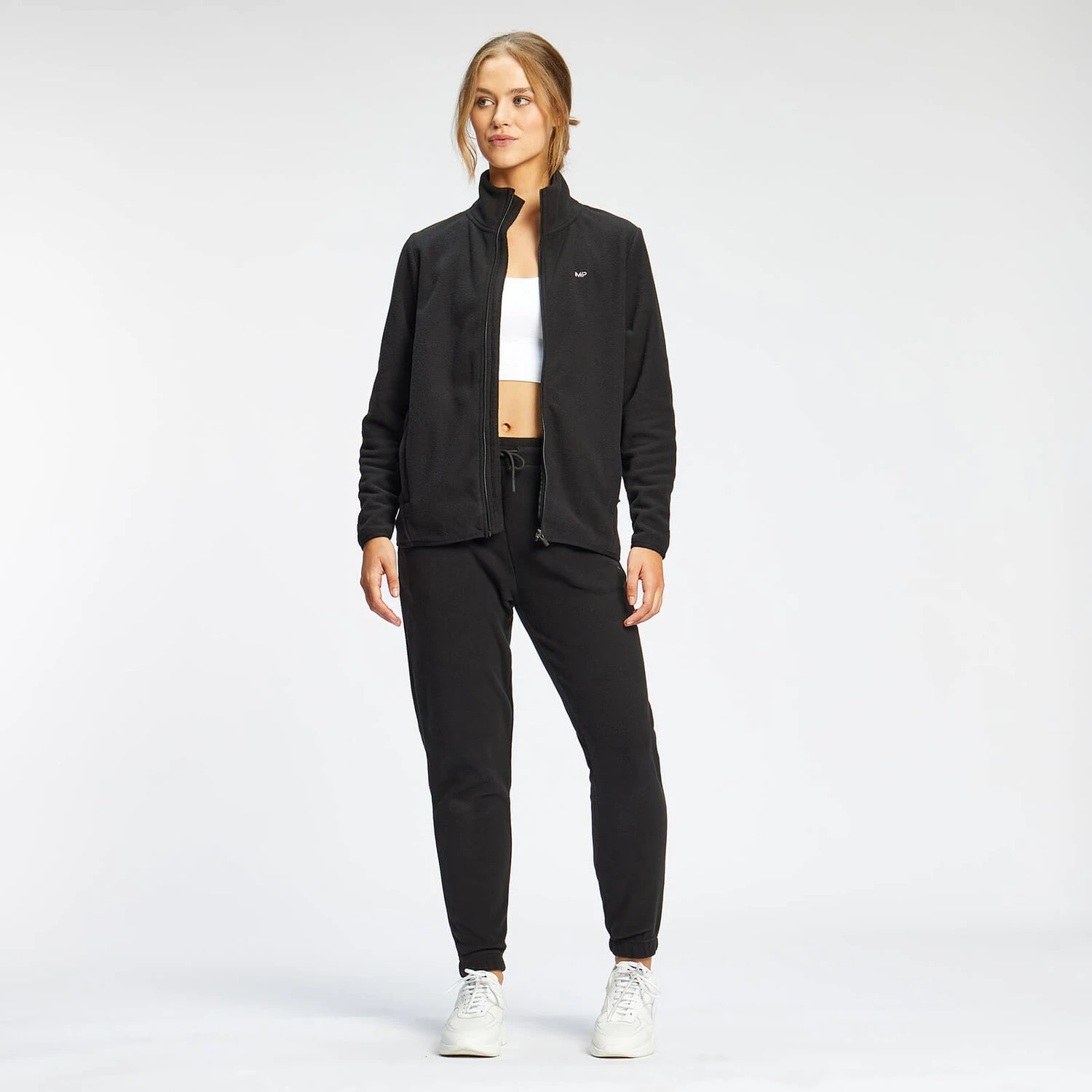 MP Damen Essential Fleece Jacke Mit Durchgehendem Reißverschluss — Schwarz