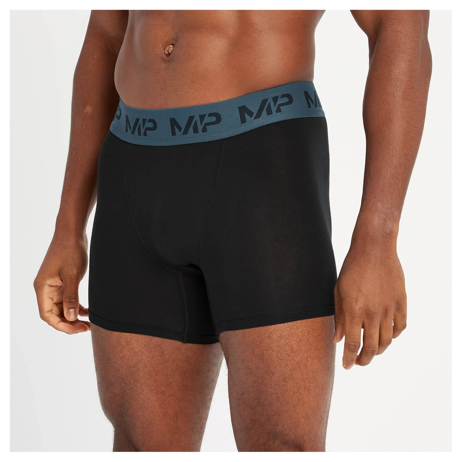 MP Herren Boxershorts Mit Farbigem Bund (3er Pack) Schwarz/Rauchblau/Kieselblau/Dunkelgrau